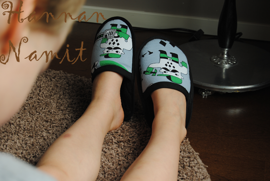 Jotenkin nämä ompelut kulkevat aika tavalla samaa tahtia viime vuoden kanssa :D. Viime vuonna ompelin pojalle tossuja (klik) suunnilleen samaan aikaan vuodesta.